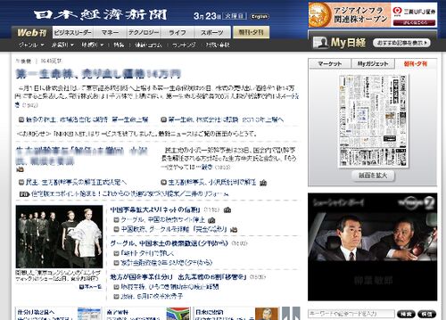 今日、3月23日から「日経新聞電子版」のサービスが始まりました。今までの「NIKKEI NET」を閉鎖統合しての、新たなココロミです。 http://www.nikkei.com/ 4月末までは無料で使えるということで(それ以降は 4,000円)、早速試してみました。 第一印象 ぱっ…