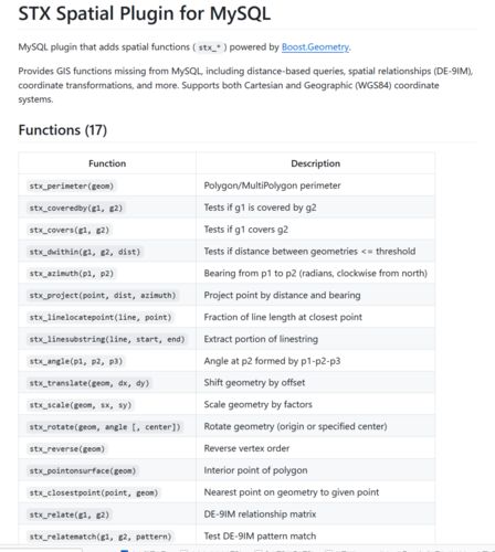 ことのおこり 地理情報機能(Spatial / GIS)に関心を持つMySQLユーザにとって、PostGISと比べての関数の少なさは最早深いコンプレックスと言っても良いものでしょう。実際に一つ一つ見てみると、そんなに使う関数ばかりでもないのですが、ここぞという時に…